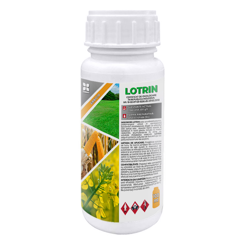 LOTRIN este un erbicid sistemic, postemergent, utilizat în combaterea buruienilor dicotiledonate. După ce erbicidul este aplicat este absorbit foarte repede și translocat în toată planta, inclusiv la nivelul rădăcinilor, acumulându-se în zone cu activitate metabolică crescută. LOTRIN asigură protecţia culturilor de buruieni pe tot parcursul sezonului de creştere.