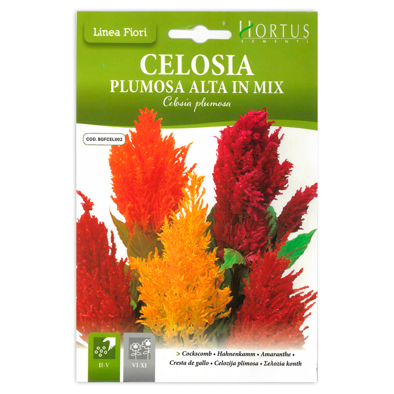 Celosia Plumosa Alta Mix - este o varietate de celosie apreciată pentru florile sale deosebite, ce formează perii mari și colorate, de diferite nuanțe de roșu, galben, portocaliu și roz. Această plantă adaugă un plus de culoare și textură în grădini și pe terase, fiind ideală pentru amenajări de vară. Celosia Plumosa Alta Mix preferă expunerea la soare și soluri bine drenate, fiind o plantă rezistentă la secetă și temperaturi ridicate. Poate fi cultivată atât în grădină, cât și în ghivece, având o înălțime medie de aproximativ 40-60 cm. Florile sale sunt excelente pentru aranjamentele florale, iar planta este ușor de întreținut, având nevoie doar de udare regulată și îngrijire minimală.