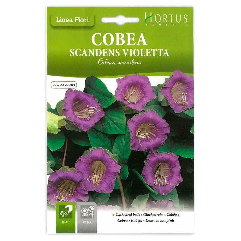 Clopote de catedrală SCANDENS VIOLETTA - este o plantă perenă cu tulpini cățărătoare, care poate ajunge la înălțimi mari. Această varietate se remarcă prin florile sale de un violet intens, în formă de clopot, care înfloresc abundent pe tot parcursul verii. Frunzele sale sunt de un verde strălucitor, iar planta formează un acoperiș natural superb, fiind ideală pentru a decora pereți, garduri sau pentru a fi folosită ca plantă de grădină verticală. Preferă solurile bine drenate, ușor acide, și o expunere la soare sau semi-umbră. Clopotele de catedrală sunt ușor de întreținut, iar înflorirea lor continuă este un spectacol plăcut pentru grădinari. Această plantă este perfectă pentru a crea un colț de grădină plin de culoare și eleganță.