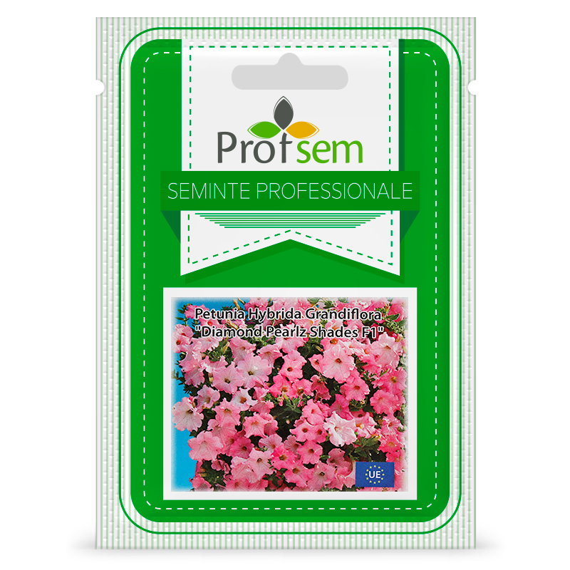 Petunia "Diamond Pearlz Shades F1" - formează o abundență de inflorescențe de nuanțe delicate de sidef de violet deschis, dimensiunea florii 7.5-8cm, cascadă 80cm. Potrivit pentru cultivarea în jardiniere înalte și suspendate, pervazuri și cutii de balcon, paturi de flori.