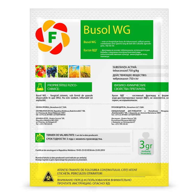 BUSOL WG - este un fungicid pe baza de tebuconazol, utilizat pentru combaterea unui spectru larg de boli din culturile agricole: grâu, vitå de vie.