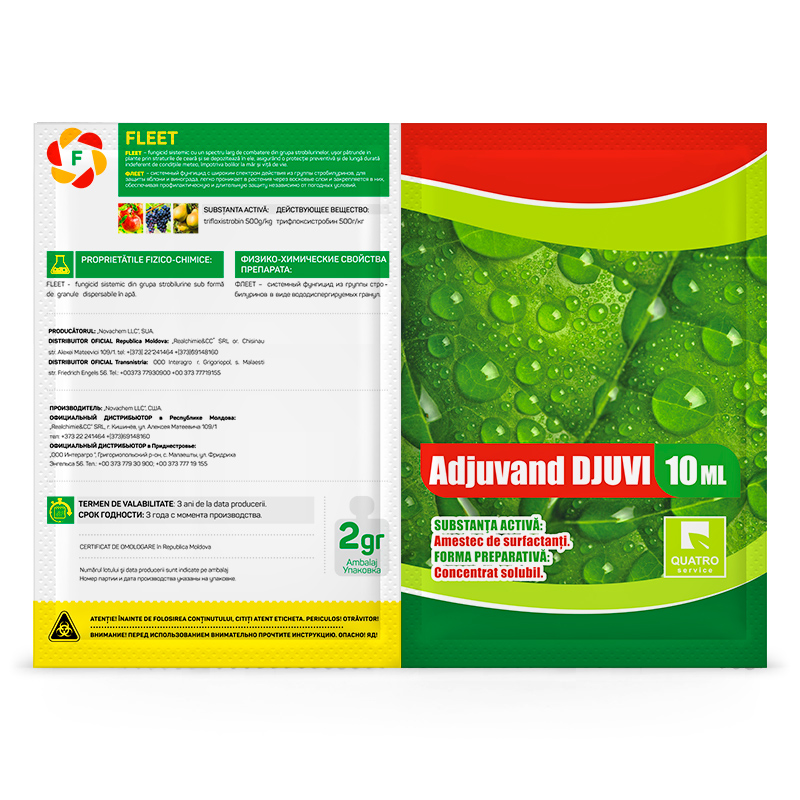 Fleet WG - este un fungicid sistemic cu un spectru larg de combatere din grupa strobilurinelor. Acesta pătrunde ușor prin straturile de ceară și se depozitează în ele, asigurând o protecție preventivă și de lungă durată împotriva bolilor la măr și viță de vie, indiferent de condițiile meteo. Fleet WG este disponibil sub formă de granule dispersabile în apă.