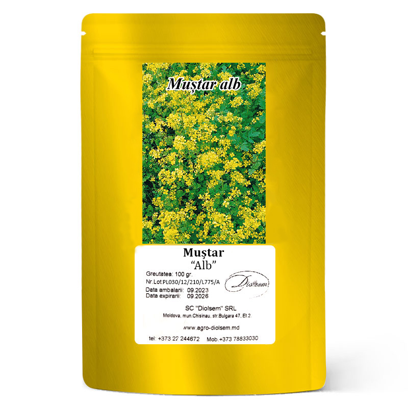 Muștar Alb – este o specie de plante erbacee anuale purtătoare de ulei, din genul Muștar, din familia Varză. Atinge o înălțime de 25-80 cm. Planta este polenizată de insecte. Perioada de înflorire este în iunie-iulie. Muștarul are un sistem radicular adânc. Semințele germinează la o temperatură de -3°C. Semințele de muștar alb germinează devreme și cresc rapid.