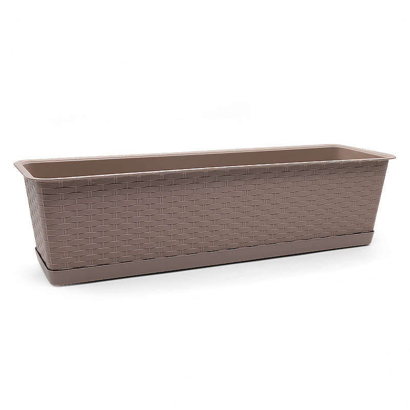 VAZA DE BALCON CU FARFURIE RATOLLA este un ghiveci dreptunghiular din colecția RATOLLA cu o textură care imită cu exactitate țesutul din ratan. Echipat cu un palet cu sistem de autoblocare. Ghivece de flori adânci, ideale pentru tot felul de plante. Textura rattanului conferă oalei aspectul unui produs natural, aduce o atmosferă de căldură și confort. Este potrivit pentru decorarea unei terase, balcon, cafenea sau apartament.