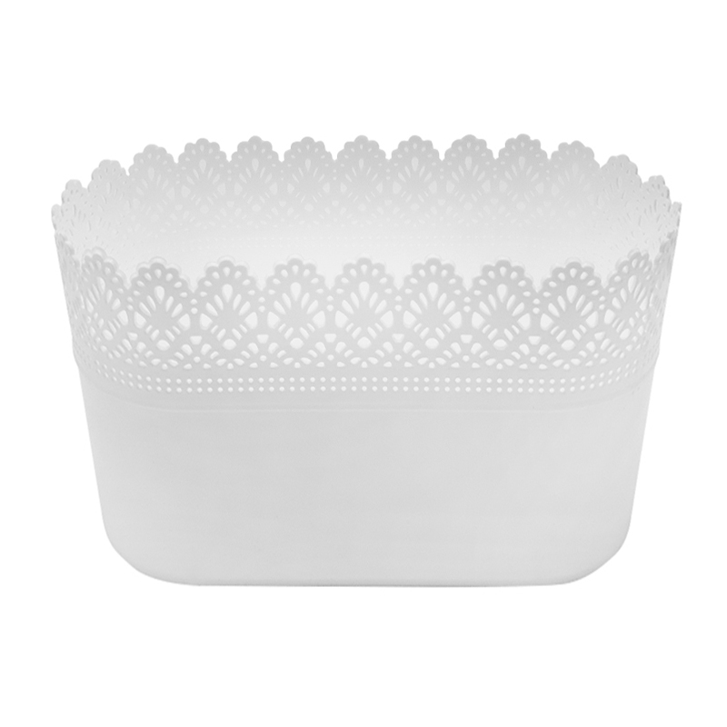 Acest vazon elegant, cu dantelă decorativă, adaugă un plus de rafinament oricărui spațiu. Forma sa ovală îl face ideal pentru a fi plasat pe balcon, pervaz sau orice colț al casei care necesită un accent de stil. Detaliile din dantelă conferă un aspect delicat și sofisticat, transformând acest vazon într-un element decorativ deosebit. Ideal pentru flori sau plante ornamentale, adaugă un aer de eleganță și feminitate, fiind perfect pentru orice interior sau exterior modern.