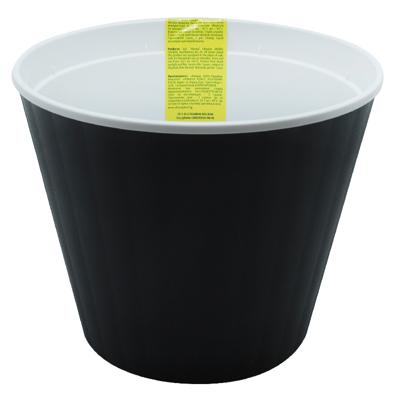 Acest ghiveci din plastic de calitate superioară este perfect pentru orice tip de plantă, combinând durabilitatea cu un design elegant. Având un interior alb și un exterior negru, ghiveciul adaugă un contrast modern și rafinat, potrivit pentru orice decor. Fabricat din materiale rezistente, acest ghiveci asigură o utilizare îndelungată, fiind ideal atât pentru plante de interior, cât și pentru cele exterioare. Interiorul alb reflectă lumina, favorizând creșterea plantelor, în timp ce exteriorul negru adaugă un accent de stil și o eleganță deosebită. Ușor de întreținut și de manevrat, acest ghiveci este alegerea perfectă pentru a înfrumuseța orice încăpere sau spațiu exterior.