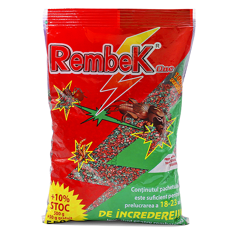 TEHNICA DE APLICARE: RembeK ONE este destinat pentru combaterea coropisnitelox din culturile de castraveţi in doza de 2-4 g/m², cartofi in doza de 3-5 g/m², tomate in doza de 2-4 g/m². Pentru o mai bună eficienţă, momeala se aplică prin încorporare în sol, sau se încorporeaza în găuri în sol la adîncime de 3-5 cm, 5-10 zile înainte de însămânțare sau plantare. Produsul nu necesită timp de pauză la reutilizare.