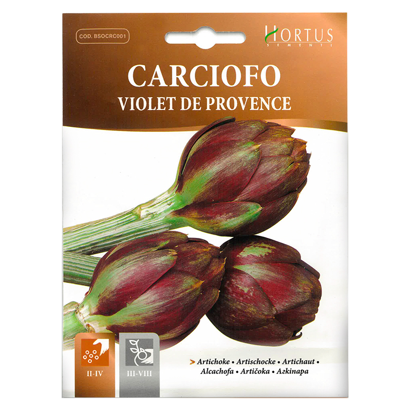 Anghinare VIOLET DE PROVENCE - este un soi de anghinare apreciat pentru capetele sale mari și de culoare violet intens, care sunt recunoscute pentru gustul lor delicat și aroma subtilă. Acest soi de anghinare se dezvoltă pe tulpini viguroase, cu frunze spinoase, formând o rozetă compactă și atractivă. Plantele sunt perene și preferă soluri bine drenate, fertile, cu un pH ușor alcalin. Violet de Provence este ideal pentru consumul proaspăt, dar poate fi gătit sau preparat prin aburire, păstrându-și textura delicată și gustul ușor dulce.