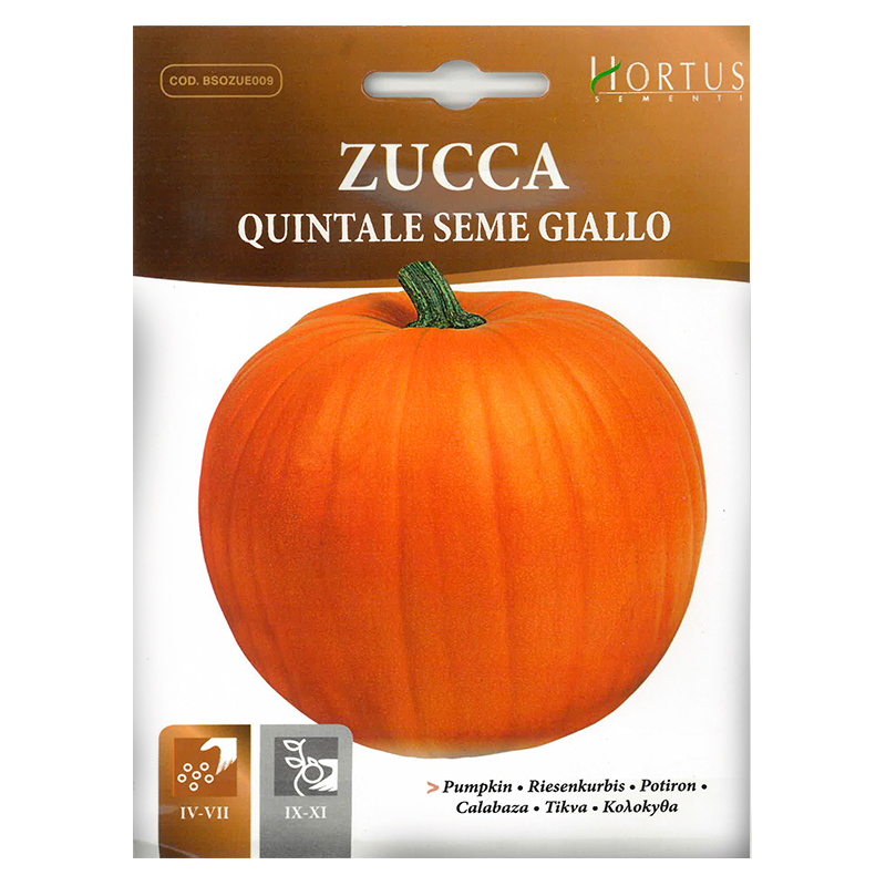 Dovleacul QUINTALE SEME GIALLO - este o varietate tradițională de dovleac, cunoscută pentru fructele sale mari și rotunde, cu o culoare galben intens. Acesta este apreciat nu doar pentru dimensiunile impresionante ale fructului, dar și pentru gustul său dulce și textura sa fermă, care îl fac ideal pentru preparate culinare, cum ar fi supe, plăcinte sau piureuri. Miezul este dens, cu un conținut scăzut de apă, ceea ce îl face ușor de păstrat pentru perioade mai lungi.