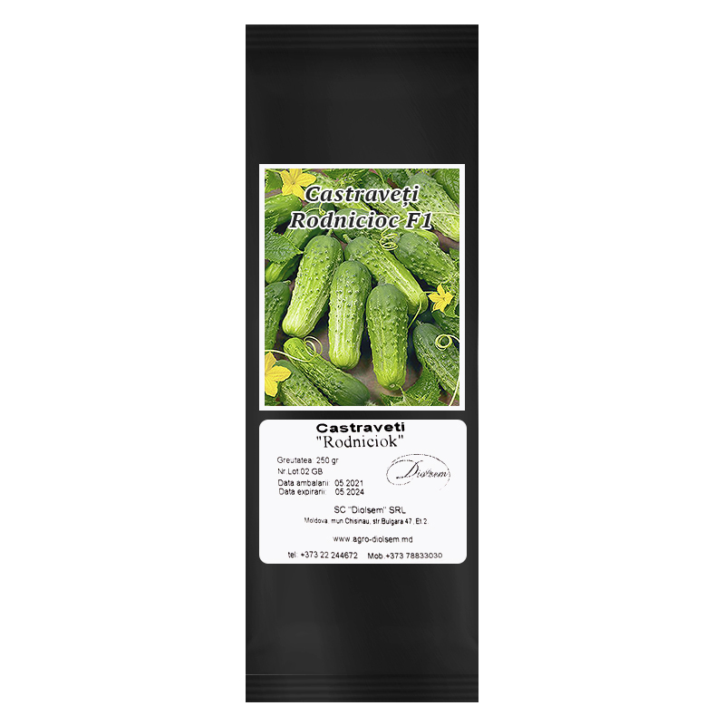 Castraveți "Rodniciok F1" - hibrid timpuriu larg cunoscut cu roadă înaltă. Planta are liane lungi, cu flori prioritar de tip feminin. Leguma este cilindrică, cu proturberanţe mici, lungimea 10-12cm, masa 70-90g. Foarte gustos, crocant, fără amărăciune, suculent, dulce. Hibridul este relativ rezistent la virusul mozaicii castraveţilor şi făinare. Se utilizează în stare proaspătă şi conservaţi.