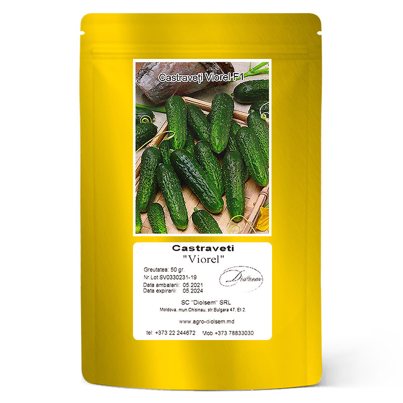 Castraveti "Viorel F1" - hibrid timpuriu, cu productivitate înaltă. Fructele de culoare verde, de formă cilindrică, cu nodozități rare cu vârful de culoare albă. Productivitatea ajunge până la 15-20 kg/m2. Hibridul este rezistent la făinare și bacterioză. Este tolerant la peronosporosis. Poate fi utilizat pentru consum în stare proaspătă și pentru conservare și murare.