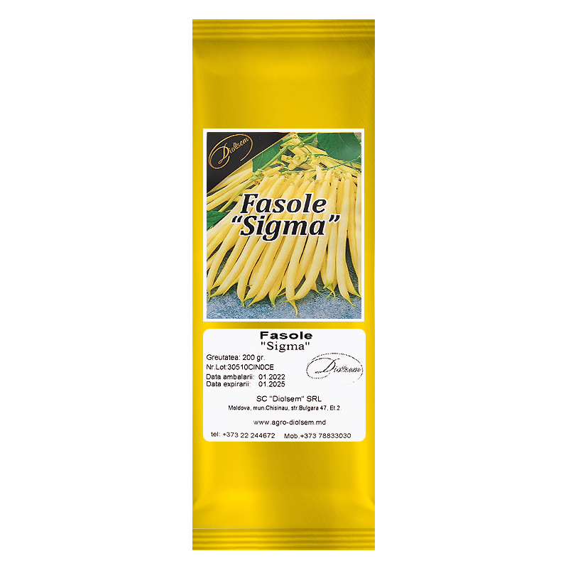 Fasole "Sigma" - soi semitimpuriu. Perioada de vegetaţie de la răsărire până la maturitatea boabelor 55-65 zile. Arbust mic, cu înălţimea de 35-45cm. Păstăi de culoare galben deschis, uniforme, cu lungime de 11-15 cm şi cu lăţimea de 1,1-1,4cm, cărnoase, fără fibre, fine şi gustoase. Seminţele sunt semănate în câmp deschis după ce trece pericolul îngheţurilor de noapte. Se foloseşte pentru consum în stare proaspătă, congelare şi conservare.