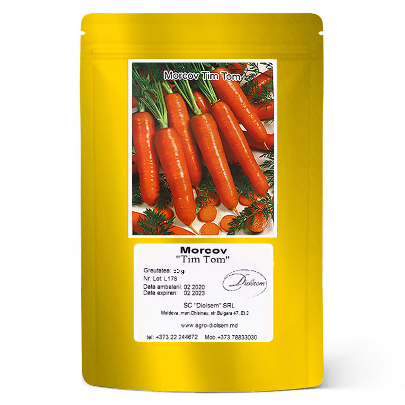 Morcov "Tim Tom" - soi excelent de morcov, mediu timpuriu, cu un sezon de creștere de 100-110 zile. Legumele rădăcinoase au 12-16 cm lungime, suculente și foarte dulci. Soiul este rezistent la fisuri, cu randament ridicat, nu este susceptibil la boli putrefactive și se păstrează perfect până în primăvară. O alegere excelentă pentru gătit acasă și consum proaspăt.