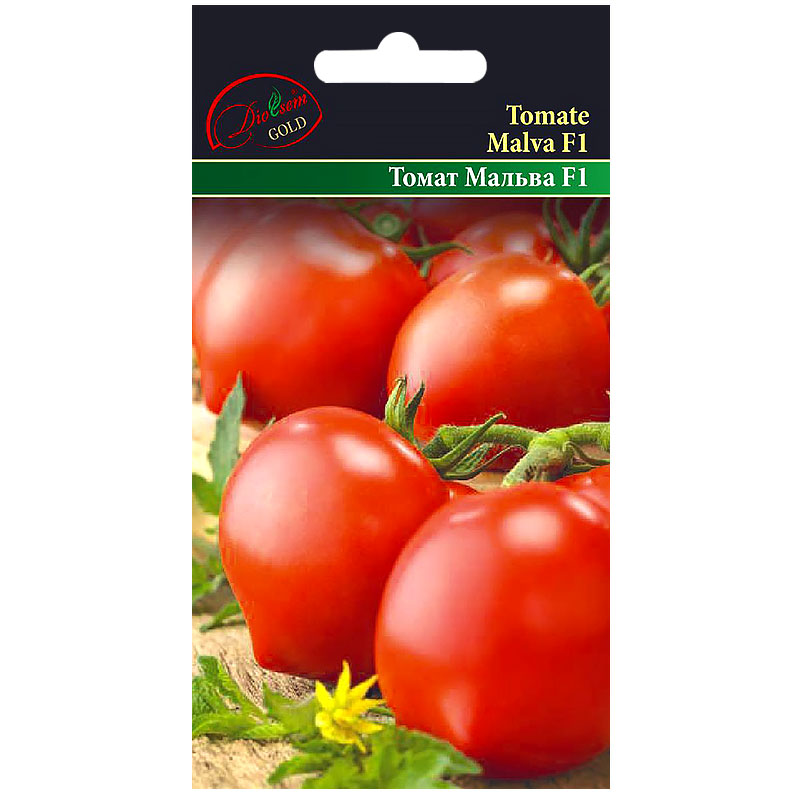 Tomat "Malva" - hibrid timpuriu, indeterminat, coacerea fructelor incepe la 89-90 de zile după germinare. Inflorescentă cu frunze medii, simplă, cu 5-6 fructe. Fructul este plat-rotund cu năsuc, culoarea fructului imatur este verde deschis, culoarea fructului matur este roşu intens. Fructele sunt transportabile, cu calitati gustative excelente, greutate 200-220 g. Productivitatea fructelor este de 19-22 kg/m². Hibridul este rezistent la alternaria şi TMV.