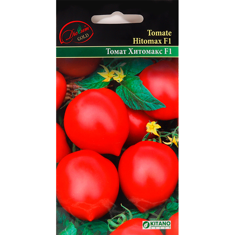 Tomate "Hitomax F1" - hibrid timpuriu de tomate cu o creștere rapidă și un sistem radicular viguros. Are frunze bine dezvoltate, care protejează tomatele de arsurile solare și formează câte 5-6 roșii în ciorchine. Fructele au formă rotundă, cu consistență omogenă, tari și sunt de calitate superioară, nu crapă. Greutatea medie a unei tomate: 180g. Se potrivesc perfect pentru transportare. Soiul este rezistent la verticilioză, fuzarioză, virusul mozaicului tomatelor. Se utilizează pentru consum în stare proaspătă și murare.