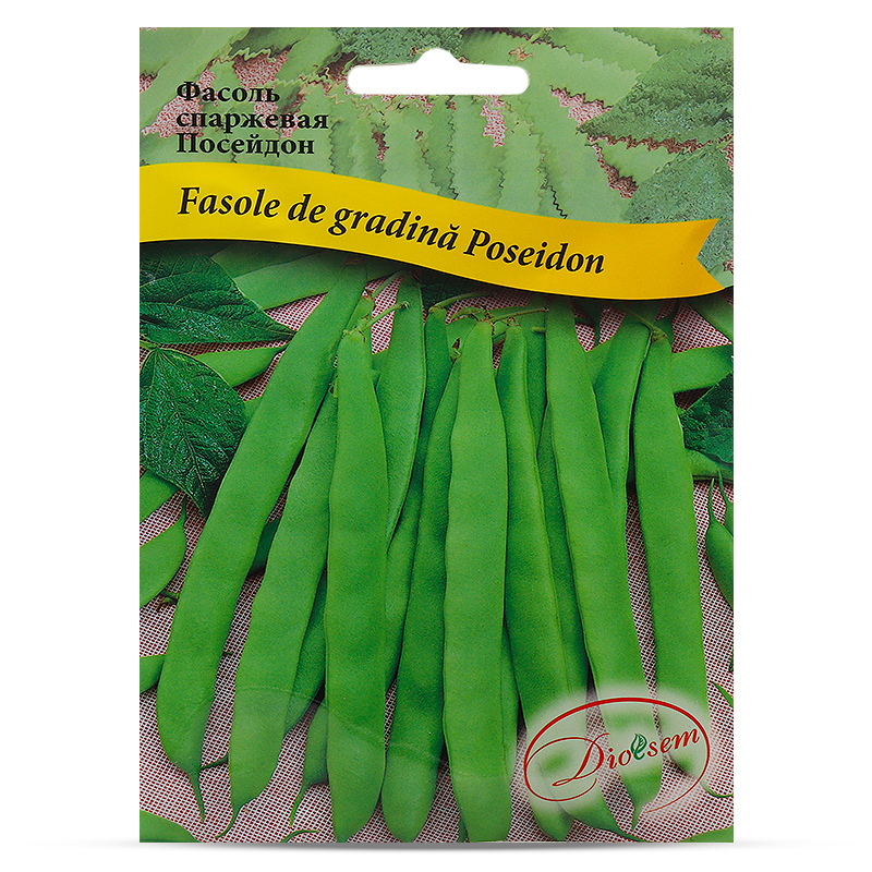 Fasole de grădină "Poseidon" - soi timpuriu. Perioada de vegetaţie de la răsărire până la maturitate tehnică 55-65 zile. Arbust mic, înălţime 30-40cm. Pe o plantă se formează până la 14 păstăi cu lungime de 12-15cm, de culoare verde. Caracteristicile gustative ale boabelor necoapte sunt excelente. Seminţele la maturitate biologică sunt de culoare albă. Se seamănă în câmp deschis după ce trece pericolul îngheţurilor de noapte. Boabele se folosesc în bucătărie, pentru conservare şi congelare.