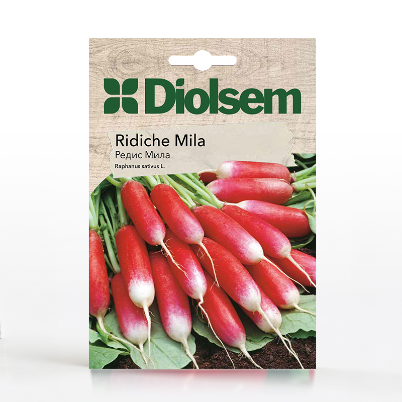 Ridiche de lună "Mila'' - soi cu maturare timpurie, productivitate mare, poate fi cultivat atât în câmp dechis, cât și în spații protejate, primăvara și toamna. Rădăcina are formă cilindrică cu diametrul de 1.5-2cm și lungimea de 4-4.5cm. Culoarea rădăcinii este roșie-aprinsă, cu vârful de culoare albă. Pulpa este de culoare albă, suculentă, fină și foarte gustoasă.