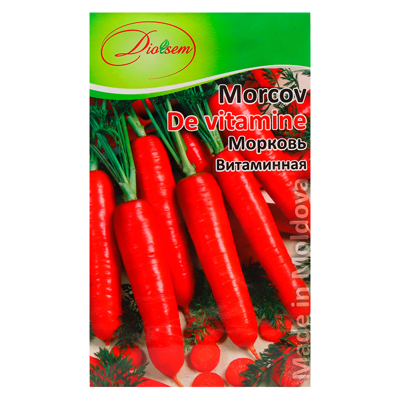 Morcov ''De vitamine'' - soi semitimpuriu. Perioada de la răsărire pînă la cules este de 80-100 zile. Rădăcina este de formă cilindrică, cu vîrful rotunjit, de culoare portocaliu-rosu, cu lungime de 15-19 cm, cu greutate de 80-165 g. Pulpa este crocantă, gustoasă, foarte zemoasă, miezul este mic, culoarea căruia diferă putin de cea a pulpei. Se recomanda pentru fabricarea sucurilor de morcov datorită unui conţinut sporit de carotină, pentru consum în stare proaspătă şi păstrare pe iarnă.