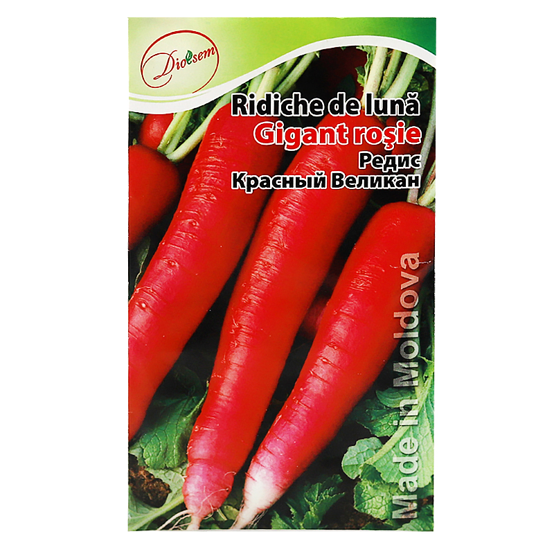 Ridiche de luna ''Gigant Rosie'' - soi de maturare medie, perioada de germinare până la maturitate tehnică este de 30-40 zile. Legumele rădăcinoase sunt ușor ridicate deasupra suprafeței solului. Rădăcina de culoare roșie, cu striații albe și roz transversale, cilindrică, cu lungimea de 12-13 cm și diametrul 2.5-3.5 cm, greutatea medie 50-100 gr, dar poate ajunge și până la 3000 gr. Miezul este aromat, de culoare albă, suculentă. Soi rezistent la frig. Dispune de calității bune de păstrare până la 3-4 luni. Calități gustative excelente. Recomandat pentru consum în stare proaspătă, în perioda de vară și de toamnă-iarnă.