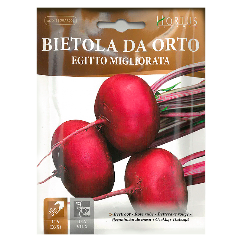 Sfecla roșie Egitto Migliorata - este un soi timpuriu, foarte apreciat pentru forma sa rotund-turtită și pentru culoarea sa roșu intens, atât la exterior, cât și în interior. Pulpa sa este fină, suculentă și dulce, fără inele albe, ceea ce o face ideală pentru consum în stare proaspătă, dar și pentru gătit sau conservare. Această varietate se dezvoltă rapid și oferă o recoltă bogată, fiind potrivită atât pentru grădinarii amatori, cât și pentru cultivatorii profesioniști. Preferă un sol bine drenat, bogat în substanțe nutritive, și necesită udare regulată pentru o dezvoltare optimă. Poate fi semănată direct în grădină începând din primăvară, iar recoltarea se face la aproximativ 50-60 de zile după răsărire. Sfecla Egitto Migliorata este rezistentă la temperaturi variate și se păstrează bine după recoltare, menținându-și gustul dulce și textura fragedă.