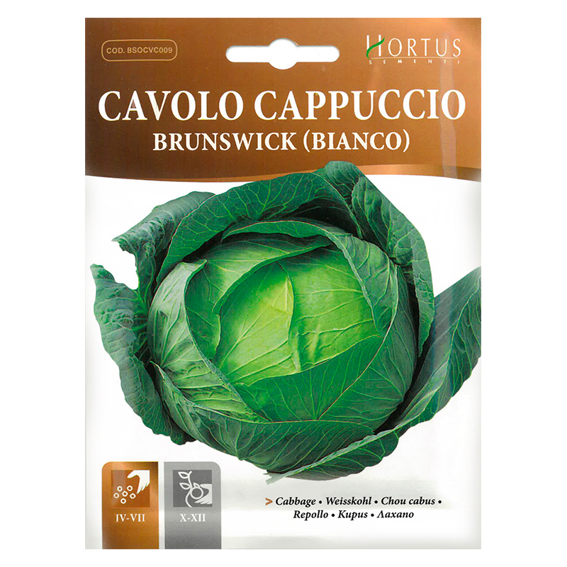 Varza Bianco Brunswick - este un soi de varză albă, apreciat pentru căpățânile sale mari, rotunde și dense, de culoare verde deschis. Este un soi mediu-târziu, rezistent la temperaturi scăzute, ceea ce îl face potrivit pentru cultivare în diverse condiții climatice. Frunzele sale sunt fragede, cu un gust ușor dulceag, fiind ideale atât pentru consum proaspăt, cât și pentru murare sau preparate gătite. Preferă un sol fertil, bine drenat, și o expunere bună la soare pentru o dezvoltare optimă. Semințele pot fi semănate direct în grădină după ce a trecut pericolul de îngheț sau pot fi cultivate prin răsaduri pentru o recoltă mai timpurie. Plantele trebuie să fie distanțate la aproximativ 50 cm pentru a permite o creștere sănătoasă a căpățânilor. Udarea regulată și fertilizarea sunt esențiale pentru a obține o recoltă de calitate, iar varza ajunge la maturitate în aproximativ 90-100 de zile de la plantare.