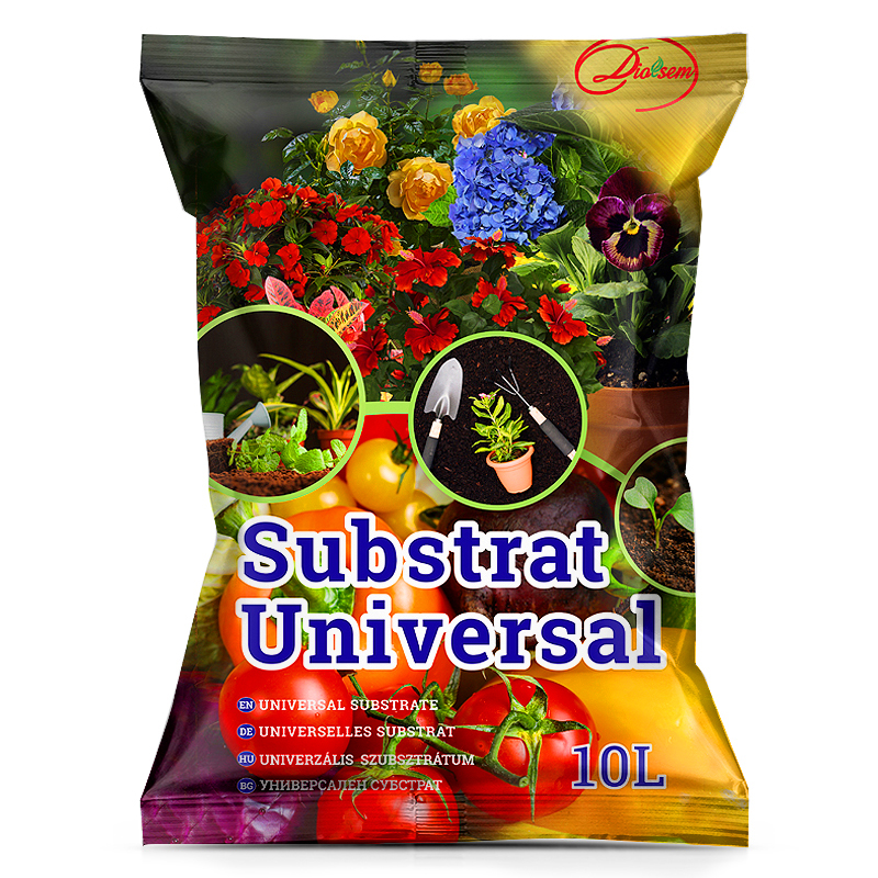 SUBSTRAT DIOLSEM UNIVERSAL (pH 5.5-6.5) este un produs finit pentru utilizare, fabricat în bază de turbă albă de calitate înaltă cu adaos de macro şi micro elemente necesare pentru dezvoltarea plantelor (P₂0, K₂0, MgO, B, Cu, Zn, Fe, Mn). Substratul universal are o concentraţie ridicată de elemente minerale. Aciditatea echilibrată şi adaosul de minerale fac din substratul universal un mediu tropic pentru creşterea rădăcinilor. Capacitatea ridicată de hidroabsorbţie şi alţi parametrii fizici contribue la hidratarea rădăcinilor, alimentarea acestora cu minerale şi microelemente, respectiv contribuie la dezvoltarea întregii plante.