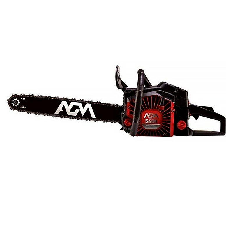 FIERĂSTRĂU CU LANŢ PE BENZINĂ AGM 5400 este un instrument eficient și practic pe care îl puteți folosi pentru o varietate de lucrări în atelier sau în grădină. Puterea ferăstrăului ajunge la 2200 W, astfel încât puteți face față rapid chiar și la o cantitate mare de muncă. Benzina este folosită drept combustibil. Capacitatea rezervorului de combustibil este de 0.56 litri, iar rezervorul de ulei este de 0.26 litri. În același timp, capacitatea motorului ajunge la 50.1 metri cubi. vezi, prin urmare acest model este considerat destul de puternic și eficient. Ferăstrăul este ușor de controlat și tăiat și există și un sistem anti-vibrații. Consumul de combustibil este destul de economic; rezervoarele pot fi pur și simplu umplute cu benzină și ulei. Există o frână de lanț inerțială și o lubrifiere automată, ceea ce face procesul de lucru mai sigur. Greutatea instrumentului este de 5.8 kg.