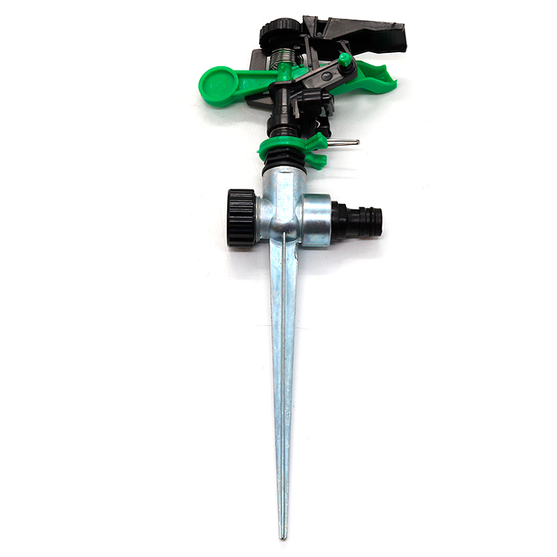 Irigarea prin aspersiune pulsatorie pe un vârf metalic este un dispozitiv conceput pentru udarea peluzelor, a terenurilor de grădină și a altor zone. Aspersorul are un suport metalic, care asigură stabilitate și durabilitate. Aspersorul funcționează pe principiul pulverizării pulsatorii, ceea ce vă permite să udați uniform suprafețe mari.