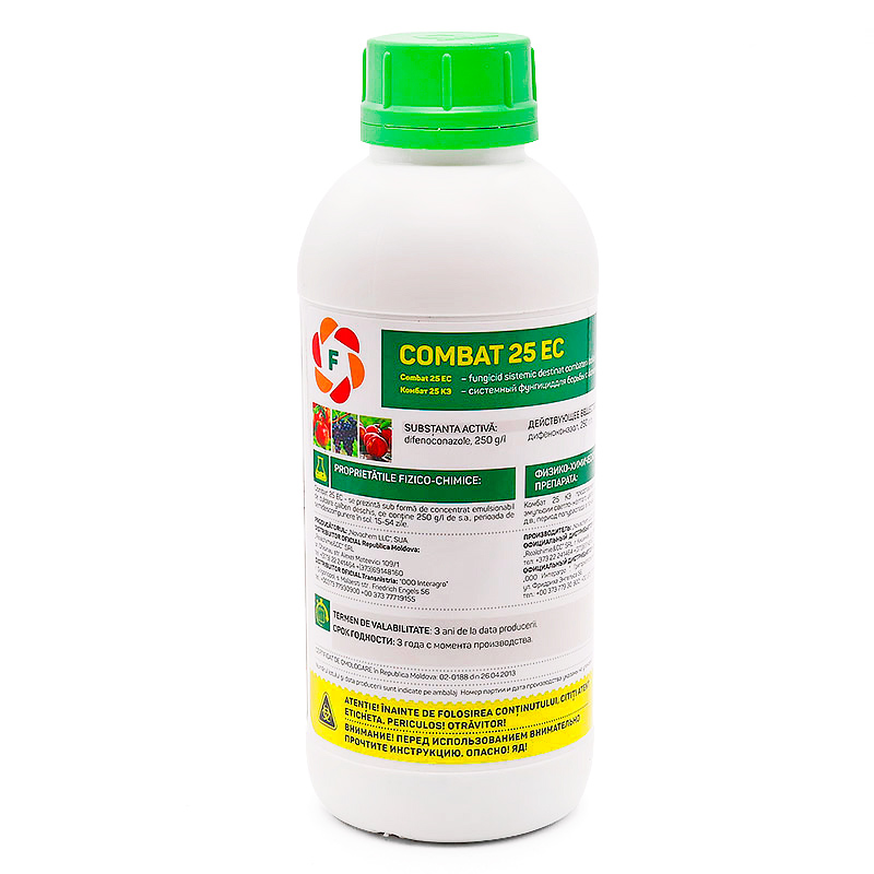 Combat 25 EC представляет собой концентрат эмульсии светло-желтого цвета, состоящий из 250 г/л д.в., период полураспада в почве - 15-54 дней.