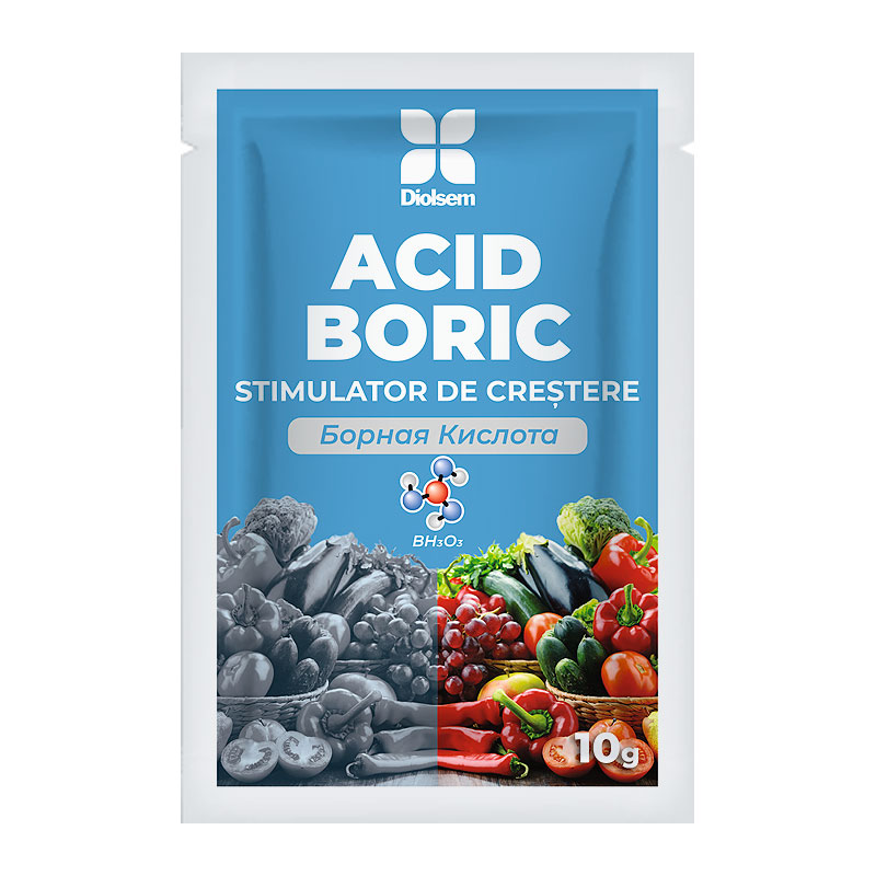 Борная кислота используется как наружный антисептик для промывания ран. Бор способствует увеличению хлорофилла, повышает урожайность, устойчивость к болезням и неблагоприятным воздействиям окружающей среды. Бор необходим для повышения уровня кальция