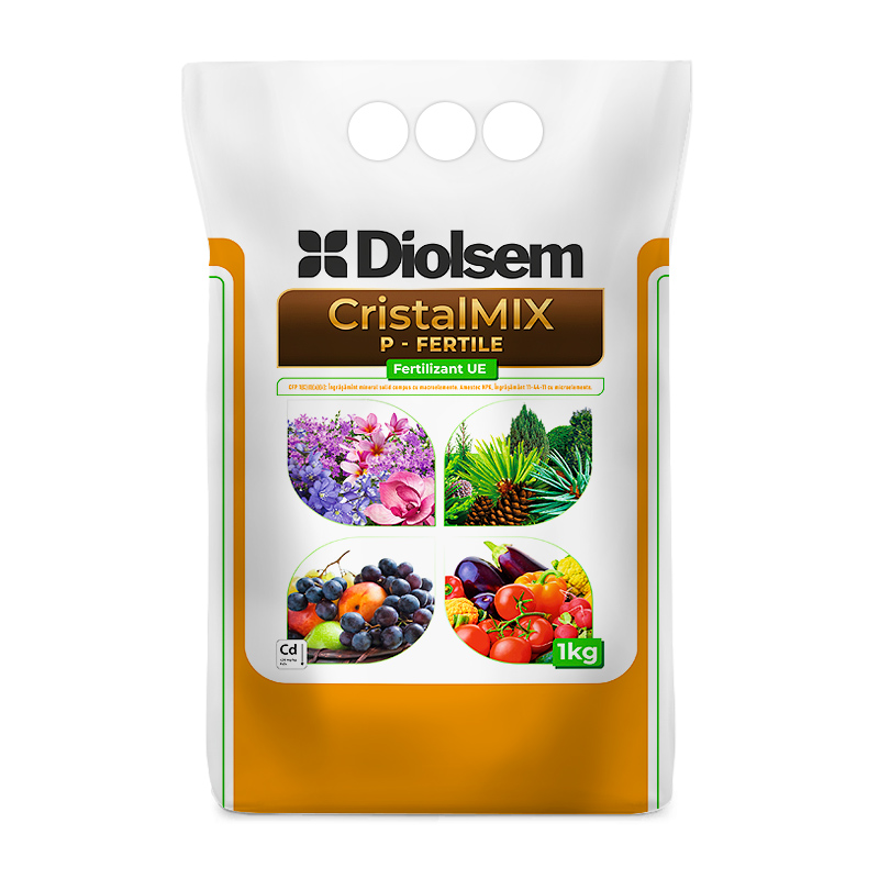 Diolsem CristalMix P–Fertile — это кристаллическое удобрение, легкорастворимое в воде, специально разработанное для стимуляции оптимального развития корневой системы. Его формула, обогащенная фосфором и полным комплексом хелатированных микроэлементов, делает его идеальным для листовой и корневой подкормки. Подходит для всех культур, это удобрение предотвращает дефицит фосфора и других необходимых питательных веществ, обеспечивая растениям здоровый и энергичный рост.