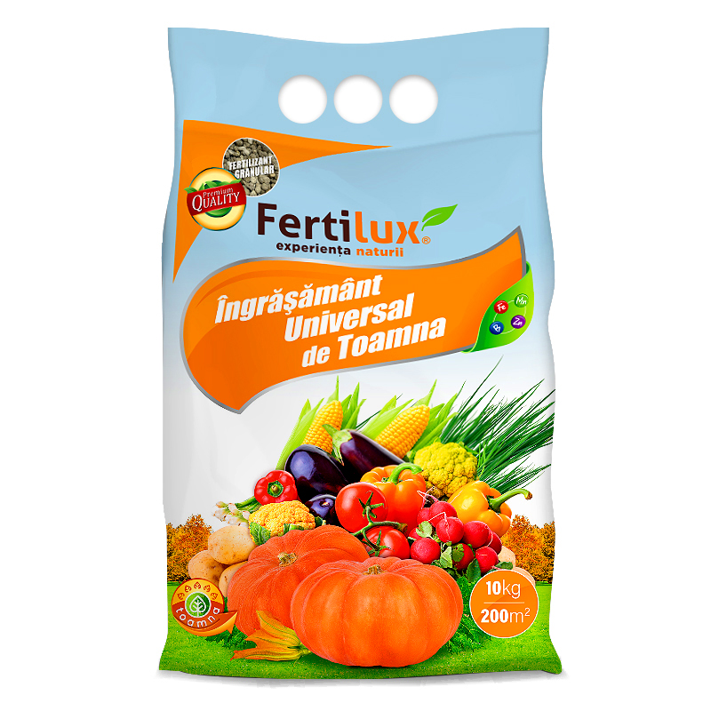 Fertilux Universal Autumn - без азотное малохлористое комплексное удобрение для осенней подкормки всех растений, а также подготовки субстрата для культур, предпочитающих кислую почву, и подготовки посадок к следующему году. Особенно рекомендуется для: кустарников и плодовых деревьев, цветов, ягодников, декоративных кустарников, газонов и хвойных растений (сосна, ель, лиственница, дугласова пихта, кипарис) и др. Это удобрение лучше всего использовать с августа до конца октября, но благодаря своим универсальным свойствам его можно использовать и в другие вегетационные периоды, в зависимости от потребностей растений. Применение этого удобрения предотвращает также потемнение края хвои у хвойных культур. Гранулированная форма и правильный состав питательных веществ позволяют постепенно высвобождать питательные вещества, придавая удобрению длительный эффект. Сбалансированные свойства макро- и микроэлементов, особенно высокое содержание калия и недостаток азота, повышают устойчивость растений к болезням.